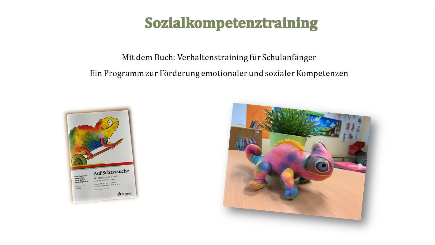 Für das Sozialkompetenztraining wird mit dem Trainingsprogramm „Verhaltenstraining für Schulanfänger“ gearbeitet. Es ist ein etabliertes Trainingsprogramm und wurde speziell für Kinder in der Schulanfangsphase entwickelt. Es trägt dazu bei, frühzeitig oppositionellem und aggressivem Verhalten vorzubeugen.