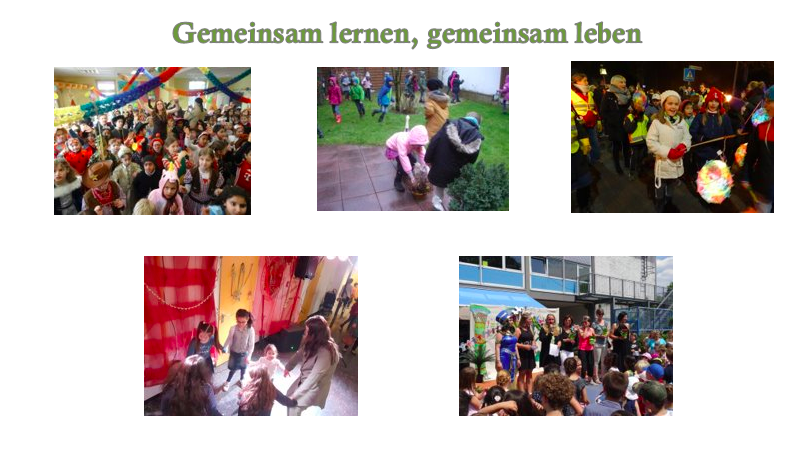 bedeutet für uns nicht nur gemeinsam zu lernen, sondern natürlich auch gemeinsam zu leben, zu feiern und das Schulleben zu genießen. Feste, Feiern und Rituale sind deshalb ein fester Bestandteil an unserer Schule und werden gemeinsam von Lehrkräften, päd. Mitarbeitenden, Eltern und Kindern geplant, wie z.B. Karneval, Ostereiersuche, Sankt Martin oder das Schulfest.