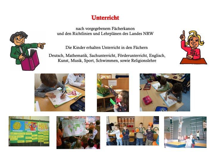 Wir arbeiten in Deutsch, Mathe und Sachunterricht zwar lehrwerksgebunden, allerdings lernen wir die Kinder parallel oder auch ergänzend dazu in offenen Arbeitsformen wie Partner-, Gruppen- oder Projektarbeit an. Dies trägt den unterschiedlichen Lernvoraussetzungen Rechnung, da die Kinder sich so gegenseitig gut ergänzen und voneinander lernen können. Nicht zuletzt lernen sie so schon im Laufe ihrer Grundschulzeit verschiedene Lernmethoden kennen.